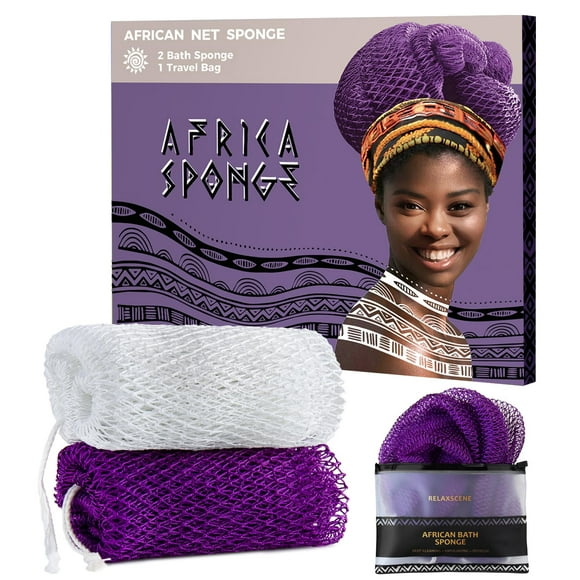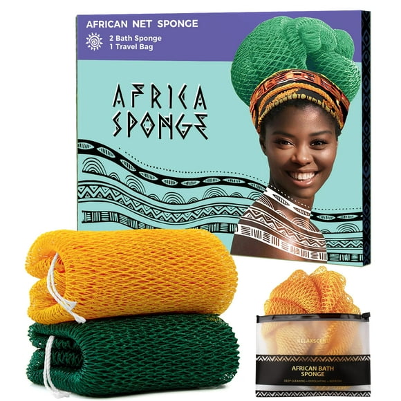 Esponja de baño RelaxScene African Net exfoliante, paquete de 2