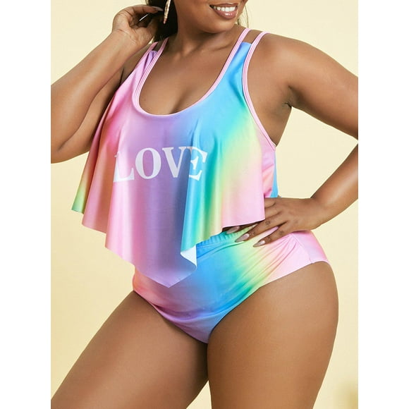Más el tamaño de la luna Fase Imprimir volantes baño tankini Rosegal Vestidos casuales de talla grandeTankini Rosegal Tamaño más empuje impreso hacia arriba Contraste baño