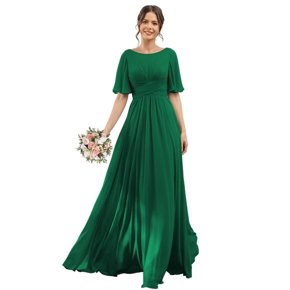 Vestido de dama de honor ROSETOO verde oscuro con mangas onduladas de gasa