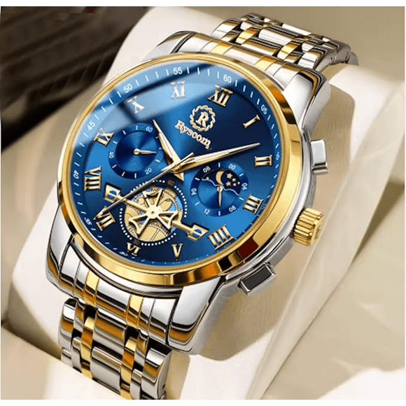 eloj de pulsera para hombre causl de lujo elegante fondo Azul con dorado correa color platareloj de pulsera para hombre causl de lujo elegante fondo negro con dorado