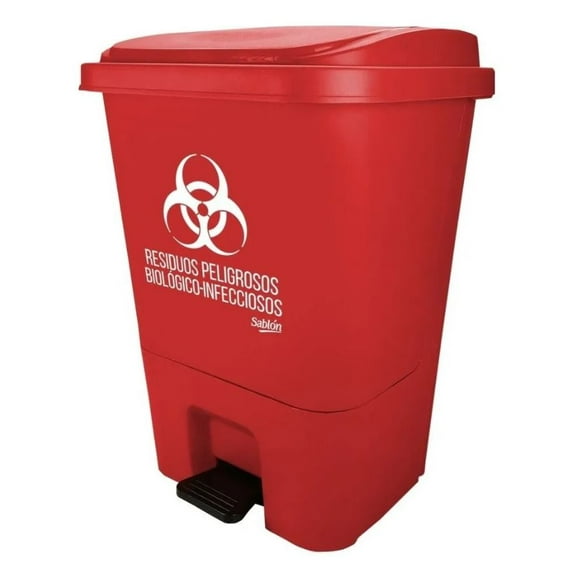 Bote de Basura Resistente Sablon Tipo Embudo 80 L Color RojoCesto de Pedal para Residuos Peligrosos Rojo Sablon Residuos Peligrosos