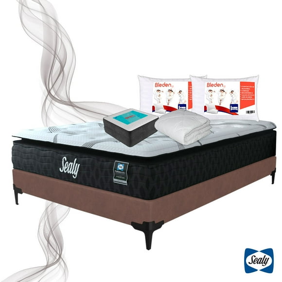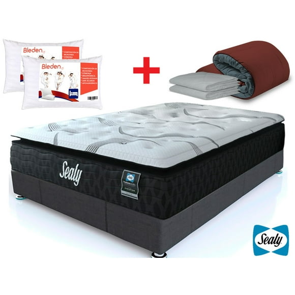 Colchón corrector Evolution Matrimonial Sealy Línea Bleden Benno + Box Matrimonial + Complemento + 2 Almohadas
