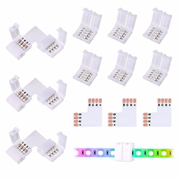 Seitruly Tira de luces LED RGB de 12 piezas, conector de esquina, accesorios electrónicos de repuesto profesional 4P, convertidor sin soldadura Electrónica
