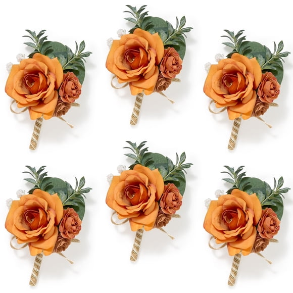 Flores Artificiales Serwalin Rosa Amarillo de Seda y Espuma 13x13x2.5 cmBoutonniere Artificial Serwalin Rosa Naranja 13x8 cm 6PCS