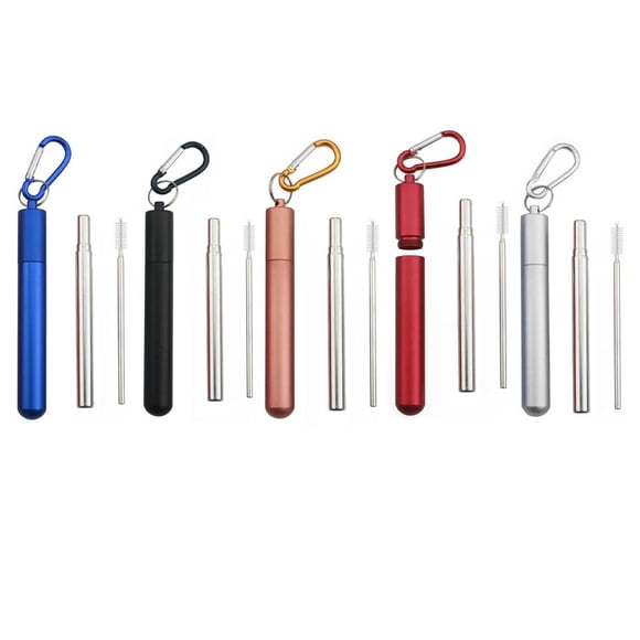 Conjunto de múltiples colores de popote de acero inoxidable tipo 304 con fondo redondo y mosquetón