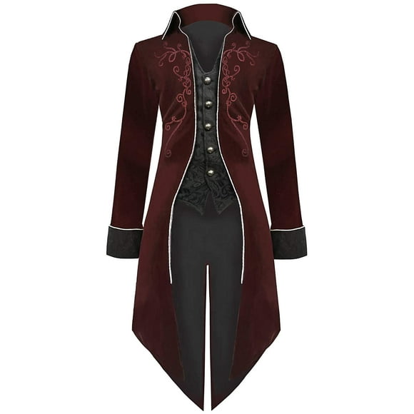 Chaqueta tailcoat SIAEAMRG Renaissance Steampunk Gothic Red XXXLChaqueta medieval Steampunk para hombre, color rojo, talla L