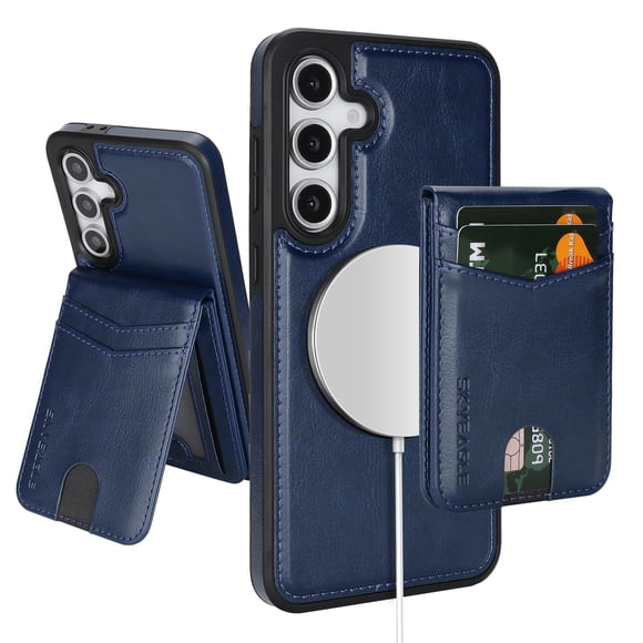 Soporte tipo cartera con soporte Airtag SkyEagle para iPhone, color azulFunda tipo cartera SkyEagle Magsafe 2 en 1 para Galaxy S25 Plus Purple