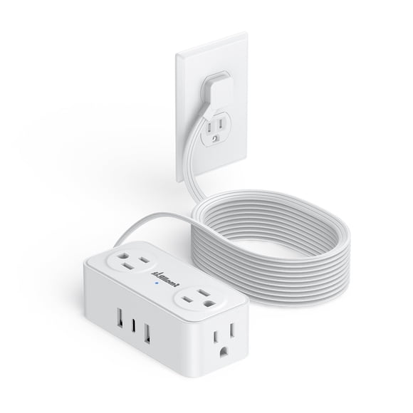 Cable de extensión con múltiples tomas de corriente, torre de tira de alimentación con protector contra sobretensiones, 12 CA 4 USB, torre protectora contra sobretensiones de 6.5 pies, protección contSMALLRT Multicontacto Extension Electrica Plano, Regleta Multicontacto 3 USB(1 USB C), Extensión Plana para Pared con 4 Salidas de CA, Conector Multiple Enchufe para Hogar, Oficina (White,