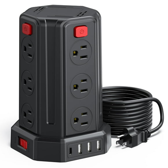 Cable de extensión, protector contra sobretensiones, Power Strip Tower, 12AC, 4USB