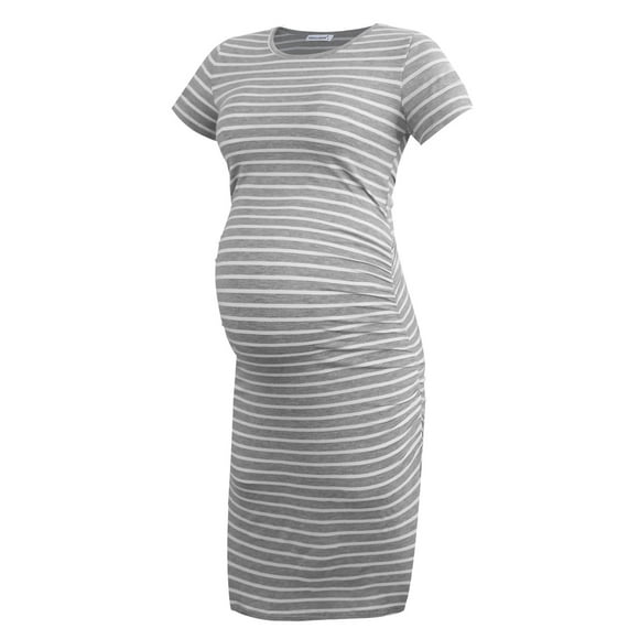 Vestido de maternidad Smallshow fruncido de manga corta a rayas gris claro