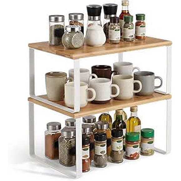 SONGMICS Organizadores de Cocina, Juego de 4 Estantes de Cocina, Apilables, Expandibles, Metal y Madera de Ingeniería, Blanco y Natural184.1667 de 5 estrellas. 18 reseñas