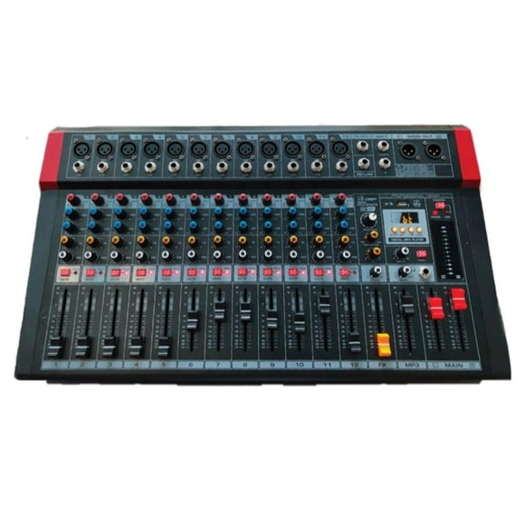 Mezcladora SOUNDTRACK MIX-1200DSP Amplificada 12 Canales 150 Wx2 Efectos DSP NegroMezcladora Pasiva SOUNDTRACK MX-1202U 12 Ch Bluetooth Phantom USB Reproductor MP3 con pantalla color Gris