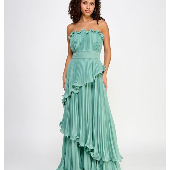 Speechless Womens Solid Tiered Strapless Ruffled Pleated Gown Dress, green, Juniors, 15Available for Envío internacionalEnvío internacional