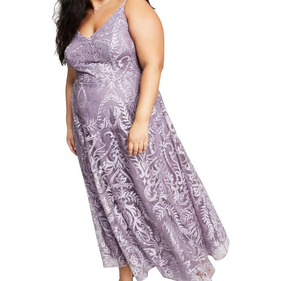 Speechless Womens Metallic Embroidered Evening Gown Dress, lavender, Plus Size, 18W