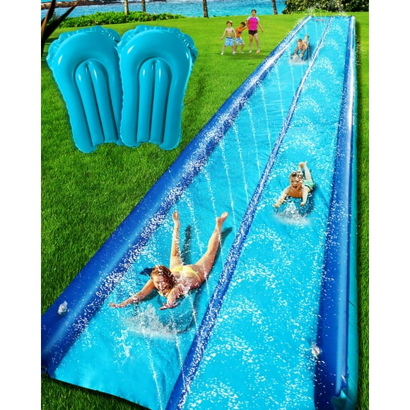 Slip Water Slide Spring Water Water de 31.5 pies con 2 tablas inflablesTobogán acuático, tobogán de agua de manantial, 22 pies x 3 carriles de carreras con rociador
