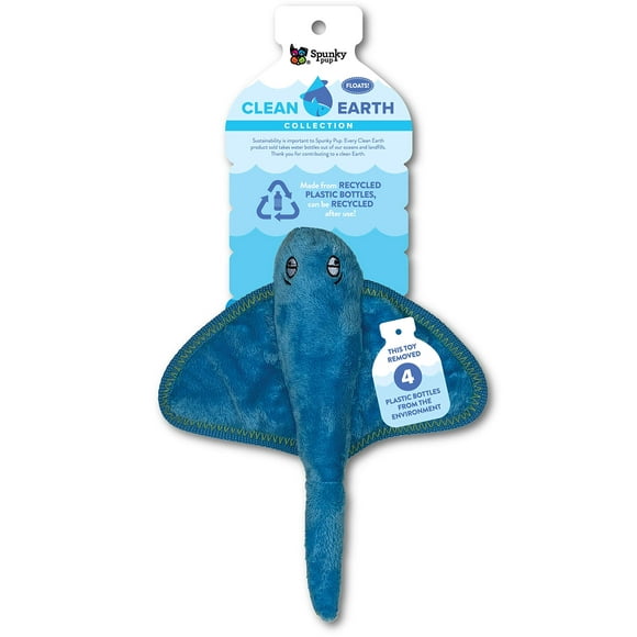 Spunky Pup Mantarraya de peluche Clean Earth | Hecho de botellas de agua 100% recicladas | Pequeño