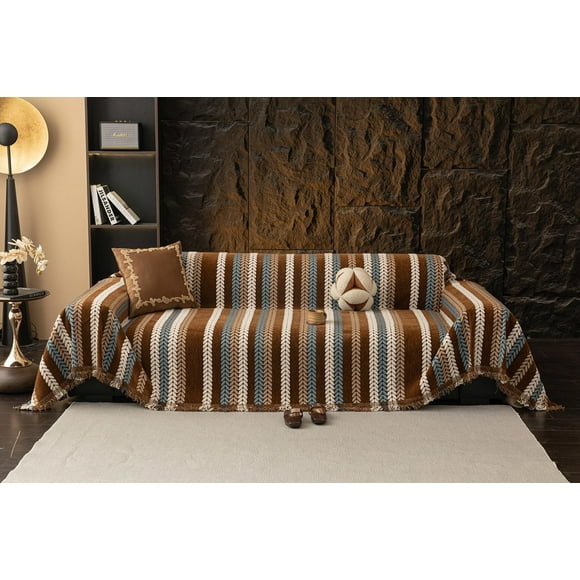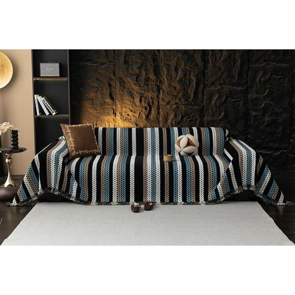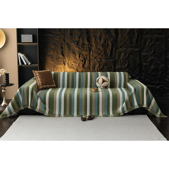 Funda de sofá STACYPIK a rayas gruesas para sofá con 2 cojines, 180 x 300 cmFunda de sofá STACYPIK Boho Chenille Jacquard con hojas de 180x380 cm