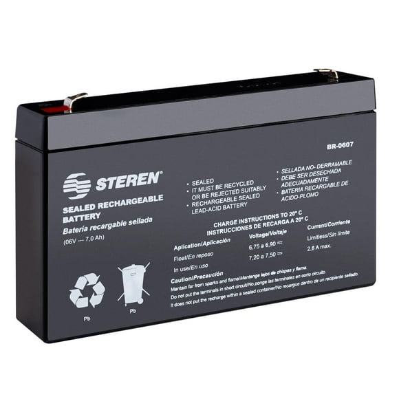 Bateria sellada de acido-plomo Steren 6 Vcc 7 Ah BR-0607Bateria sellada de acido-plomo Steren 6 Vcc 4 Ah BR-0604
