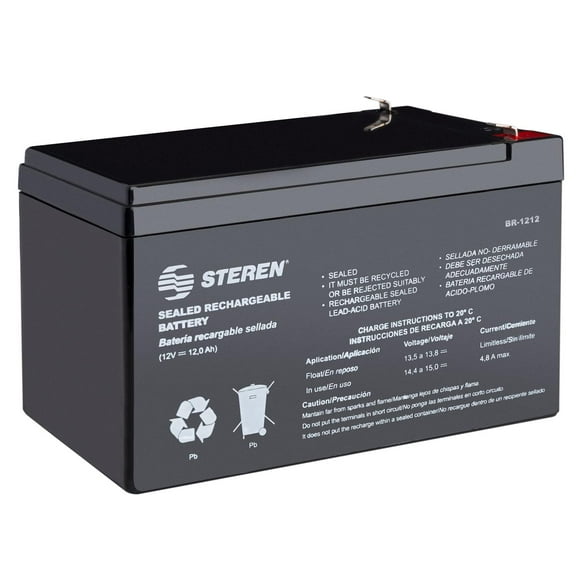 Batería Recargable BR-1207 Steren Sellada de Ácido-Plomo 12V 7AhBatería sellada de ácido-plomo Steren 12 Vcc 12 Ah BR-1212