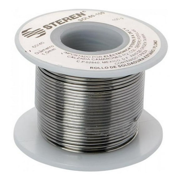 Rollo de Soldadura Steren SOL60-450 450 gramos Aleación 60/40 de Estaño/PlomoEstación profesional para soldar, con lupa y lámpara Steren HER-725NE