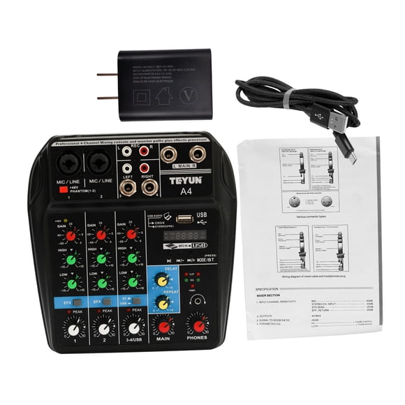 Cable de extensión de audio Estéreo 3,5 mm Sunnimix 1 m negroAmplificador de 48V Sunnimix Sistema de consola de mezcla de sonido Digital Portátil 4 canales