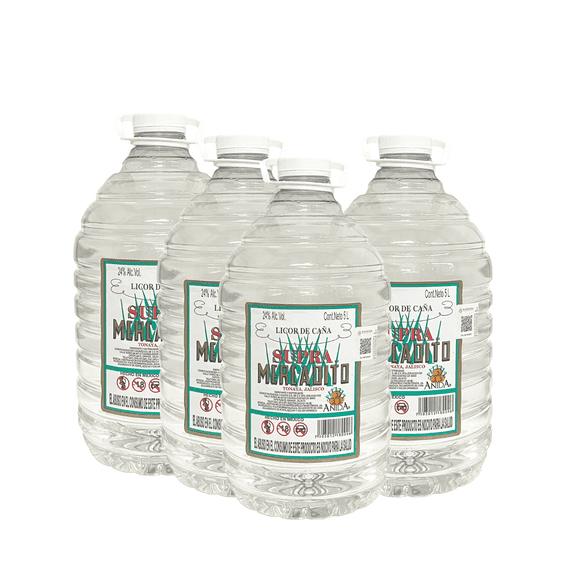 Cuatro Garrafas Licor de Caña Supra Mercadito Blanco 5 L. Supra Mercadito Licor de Caña