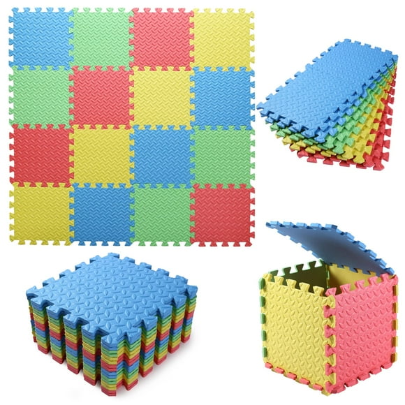 Alfombra de juego de espuma Tamiplay, 16 azulejos para niños de 0.4 pulgadas de grosor, rojo/amarillo/azul/verdeAlfombra de juego de espuma Tamiplay, 16 baldosas entrelazadas, 1 cm de grosor