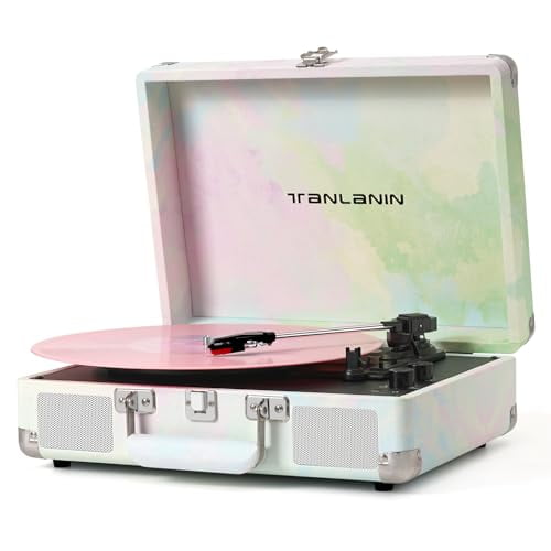 Reproductor de discos de vinilo de acuarela con control de agudos y graves, tocadiscos portátiles con maleta Bluetooth vintage de 3 velocidades con altavoces incorporados, reproductor LP de 33 45 78 RAvailable for Envío internacionalEnvío internacional