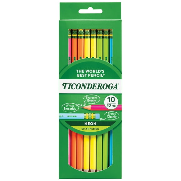 Lápices de madera Ticonderoga sin afilar, 2 HB, blandos, 72 unidadesLápices en estuche de madera Ticonderoga #2 HB Soft Neon, 10 unidades