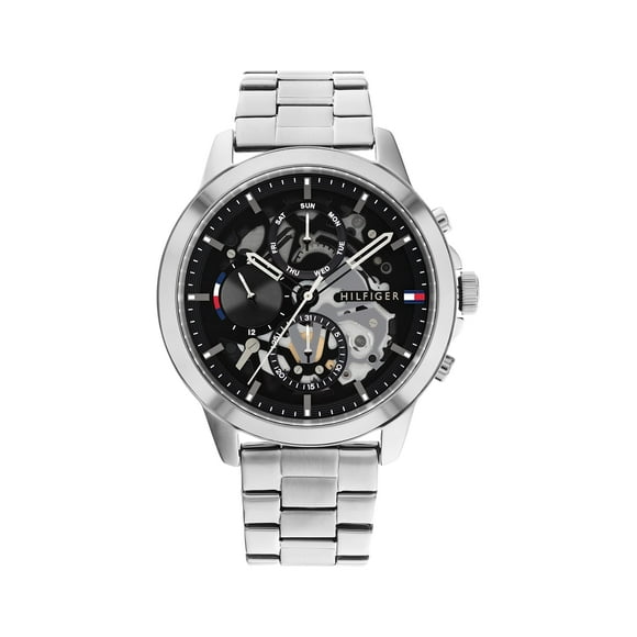 Tommy Hilfiger Reloj multifunción de acero inoxidable y pulsera de eslabones para hombre Color: Negro (Modelo: 1710477)Tommy Hilfiger Reloj multifunción para hombre con correa de cuero y acero inoxidable Color: Azul (Modelo: 1710476)