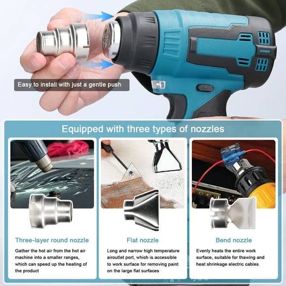 Mácina de calefacción de aire caliente inalámbrico de máquina eoglo de calentamiento recargable de calefacción de litio Herramiente de alimentación con 3 boquillas paraAvailable for Envío internacionalEnvío internacional