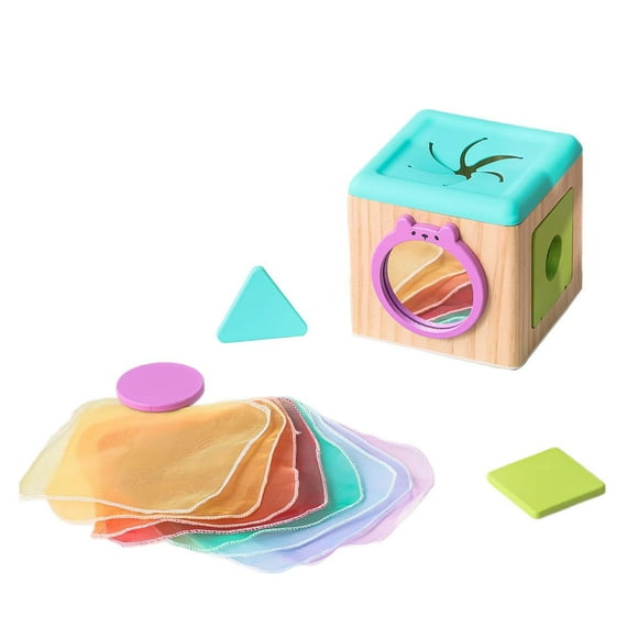 Caja de pañuelos para bebé, juguete educativo de aprendizaje con bufandas suaves de colores, juguete de clasificación, cubo de actividades de madera,