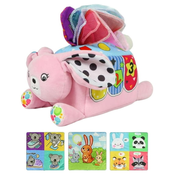 Caja de pañuelos de juguete sensorial, juguetes educativos de alto contraste, rellenos, coloridos y suaves para ConejoCaja de pañuelos sensorial, juguete para tirar, caja de pañuelos, juguete para tirar, actividades para niños D