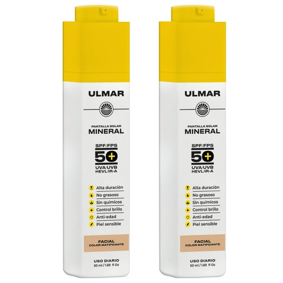 Protector Solar Facial Mineral Ulmar Color Matificante 2pzsULMAR Protector Solar Facial Mineral Fps50 Uva/uvb/hevl/Ir-v color matificante 50ml