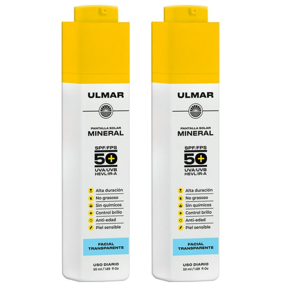 ULMAR Protector Solar Facial Mineral Fps50 Uva/uvb/hevl/Ir-v color matificante 50mlULMAR Duo Protector Solar Facial Mineral Fps50 Uva/uvb/hevl/Ir-v Piel sensible orgánico 50m 2pzs