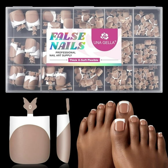 Uñas postizas UNA GELLA 6 en 1, X-Soft French, 330 unidades, para mujerPuntas para uñas de los pies UNA GELLA, punta cuadrada, 15 tamaños, 504 unidades, gel blando