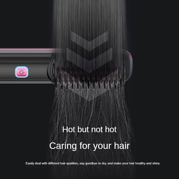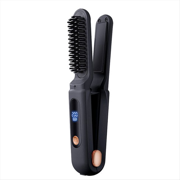 Cepillo Alisador de Pelo Inalámbrico, Cepillo Alisador de Calentamiento Rápido, Rizador de Pelo de Iones Negativos, Peine Calefactor Portátil-NegroAvailable for Envío internacionalEnvío internacional