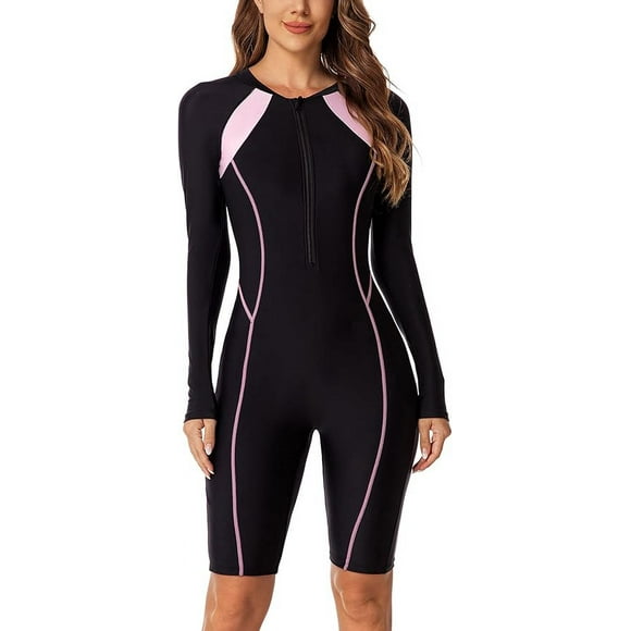 Traje de baño de una pieza para mujer con protección solar UV UPF 50+, estampado, con cremallera, para surfTraje de baño de una pieza con protección solar UPF 50 para mujer, de manga larga y cremallera frontal.