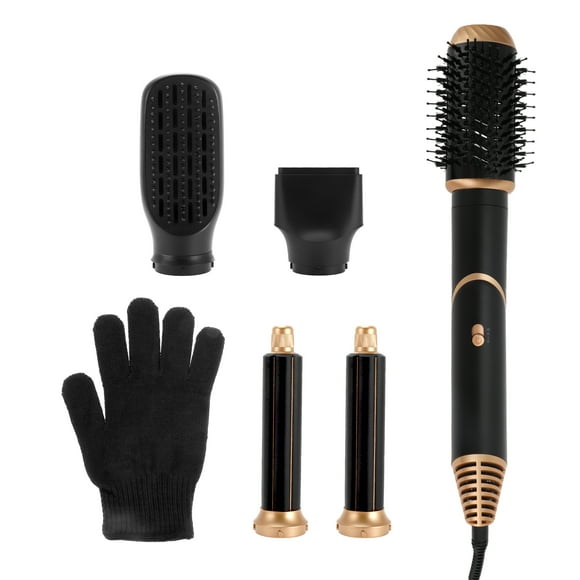 Cepillo de Aire Caliente 5 en 1 Secador de Pelo Cepillo Secador Desmontable Estilo de Rizador Eléctrico Set Negro