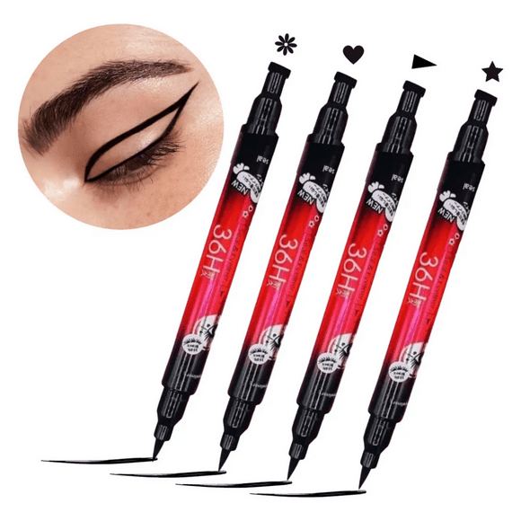 Set 4 Delineadores 2 En 1 Sello Figuras Negro 36h BellezaKit Modelado Sellos Cejas Maquillaje 24 Plantillas Sombra