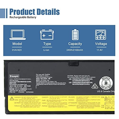 Batería para Laptop VANPIR 01AV431 11.52V 57Wh para Lenovo X1Batería de Repuesto Vanpir 61 01AV423 SB10K97580 para Laptop Lenovo ThinkPad A475 T470 T570 T480 T580 P51S P52S TP25 4X50M08810 01AV422 01AV424 01AV452 SB10K97579 11.4V 24Wh 2100mAh