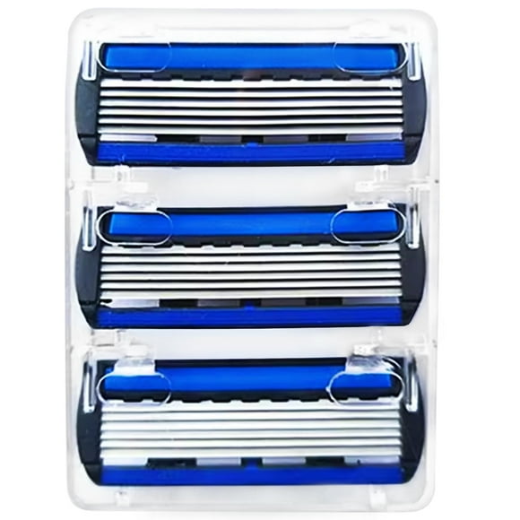 Práctico Repuesto Maquina Afeitar SmoothBlade6D 4Paqs 4x3Cartuchos 6Hojas Flexible Lubricante Azul/Negro Acero Inoxidabl