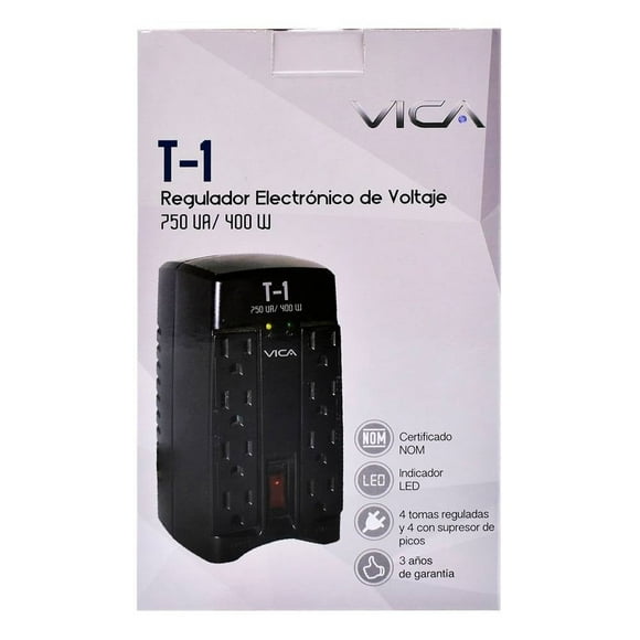 Regulador Electrónico Vica de Voltaje T-1 NegroNo Break Vica Regulador Integrado Stamina 500