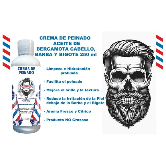 CREMA DE PEINADO ACEITE DE BERGAMOTA CABELLO, BARBA Y BIGOTE VIVONATURAL 250 ml. LIMPIEZA E HIDRATACIÓN PROFUNDA, FÁCILITA EL PEINADO, NO GRASOSOAROMA FRESCO Y CÍTRICO