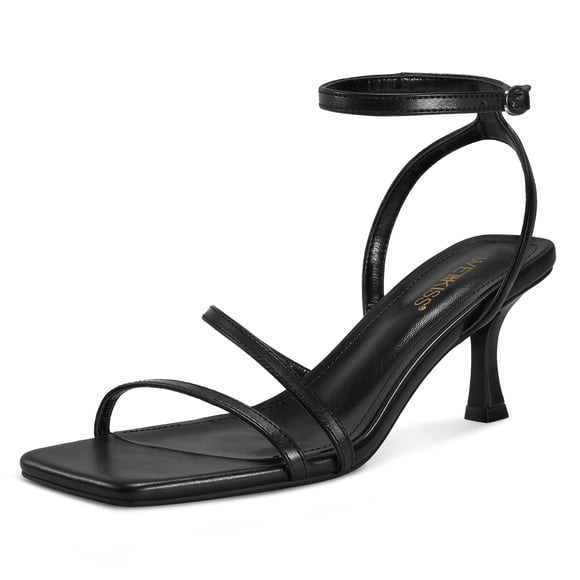 Sandalias con tacón wetkiss negras con tiras cómodas para gatitos, 6,5 cmSandalias con tacón wetkiss Nude Kitten Heels para mujer, talla 7