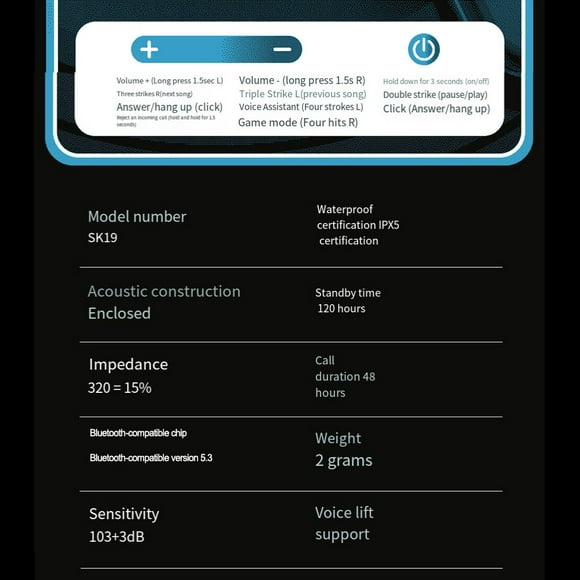 SK19 para TWS Auriculares BT Micrófono Sleep Earbuds Cancelación de ruido Auriculares de música HIFIpara TWS Auriculares inalámbricos con conducción ósea, BT 5.2, diseño de clip para auriculares, táctil