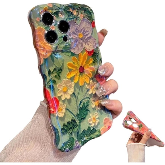 Lurvia Funda para teléfono, colorida pintura al óleo retro, diseño de flor y luna, funda protectora de TPU delgada a prueba de golpes, funda floral impermeable con airbag anti caída (verde, para iPhonCriteriont Funda de Privacidad para Teléfono, Funda para Teléfono Criteriont, Funda para Teléfono con Pantalla de Privacidad, Funda de Privacidad para Teléfono, Cubierta de Vidrio Templado con Privaci