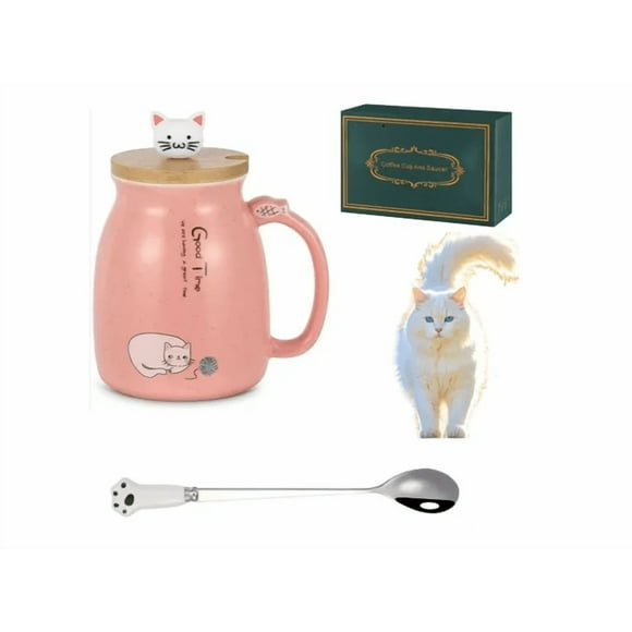 Taza De Café De Cerámica Con Bonita Tapa Cuchara De Gato Xtellar rosaTaza De Café De Cerámica Con Bonita Tapa Cuchara De Gato Xtellar rosa