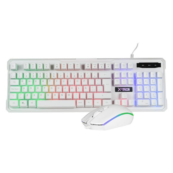 Kit 2 en 1 Teclado y Mouse Gamer Xtreme PC By BALAM RUSH USB Iluminacion LED 3600dpi Blanco Xtreme PC Gaming XT-932752Kit Gamer 4 en 1 XTREME PC GAMING Battle Force Teclado Membrana Español Mouse Audifonos MousePad RGB USB Blanco