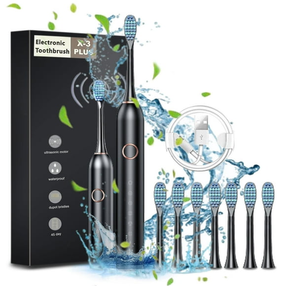 Toothbrush With 4 Brush Heads 6 Cleaning Modes IPX7 Water Proofing Two-minute Timer Setting Toothbrush-NewlySound Wave Toothbrush Couple's USB Charging Soft Hair Intelligent Waterproof Adult Version